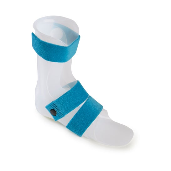 Orthèse dynamique de l'articulation de la cheville conçue par Orliman. Il est fabriqué en thermoplastique et se compose de deux parties. La première est de faible densité, couvrant l'arrière de la jambe et la surface plantaire ; elle couvre le périmètre du médio-pied, afin que l'orthèse puisse s'adapter correctement et assurer un confinement optimal des tissus. La deuxième pièce, de densité plus élevée, offre un soutien plus rigide et optimise le positionnement et l'alignement du pied.