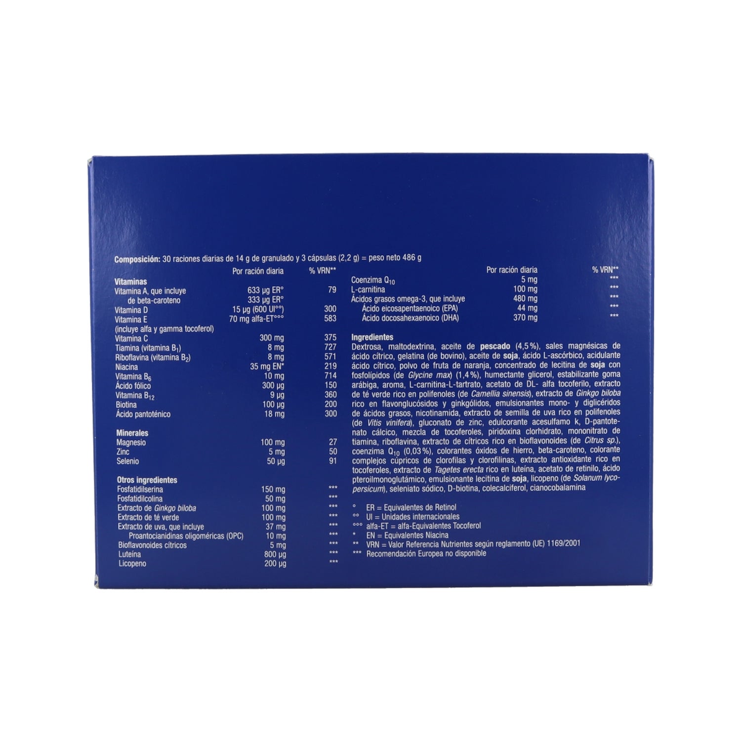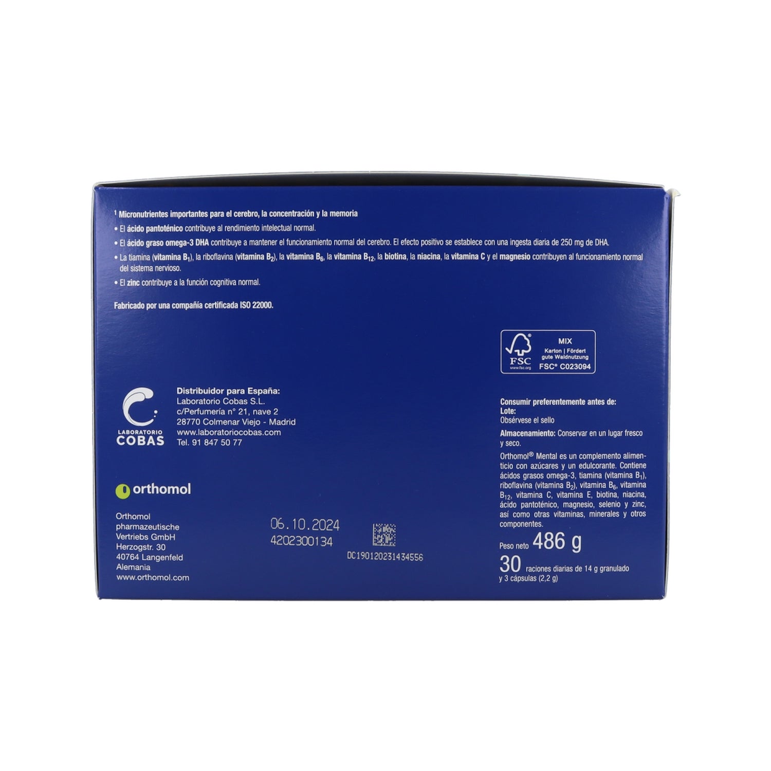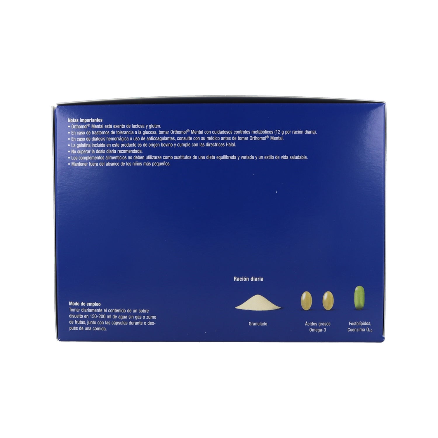 Ce complément aide à optimiser les performances intellectuelles, la concentration et la mémoire. Il contient également des composés qui contribuent au bon fonctionnement du système nerveux et au maintien d'une performance optimale des fonctions mentales. Orthomol Mental contient des composés qui contribuent au bon fonctionnement des fonctions cognitives. Sa formule est antioxydante, ce qui aide à protéger le cerveau des dommages causés par le stress oxydatif. Orthomol Mental se présente sous la forme de 30 comprimés en poudre pour une consommation facile. Il est recommandé de conserver le produit dans un endroit sec et à une température fraîche. Il doit également être tenu hors de portée des enfants. Contient du soja dans sa composition. Ce produit peut être consommé par les personnes intolérantes au lactose, cœliaques et aux oeufs.