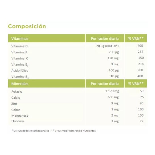 Complément alimentaire avec des micronutriments qui contribuent au maintien et à la fonction normale des os.