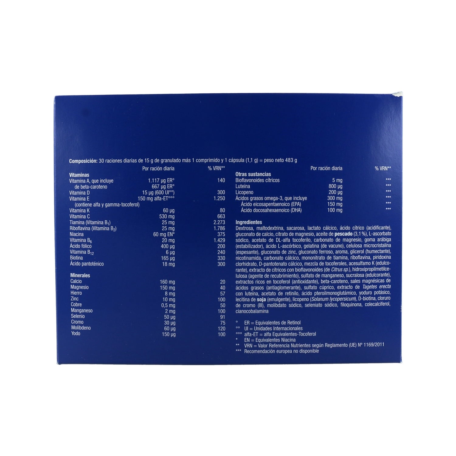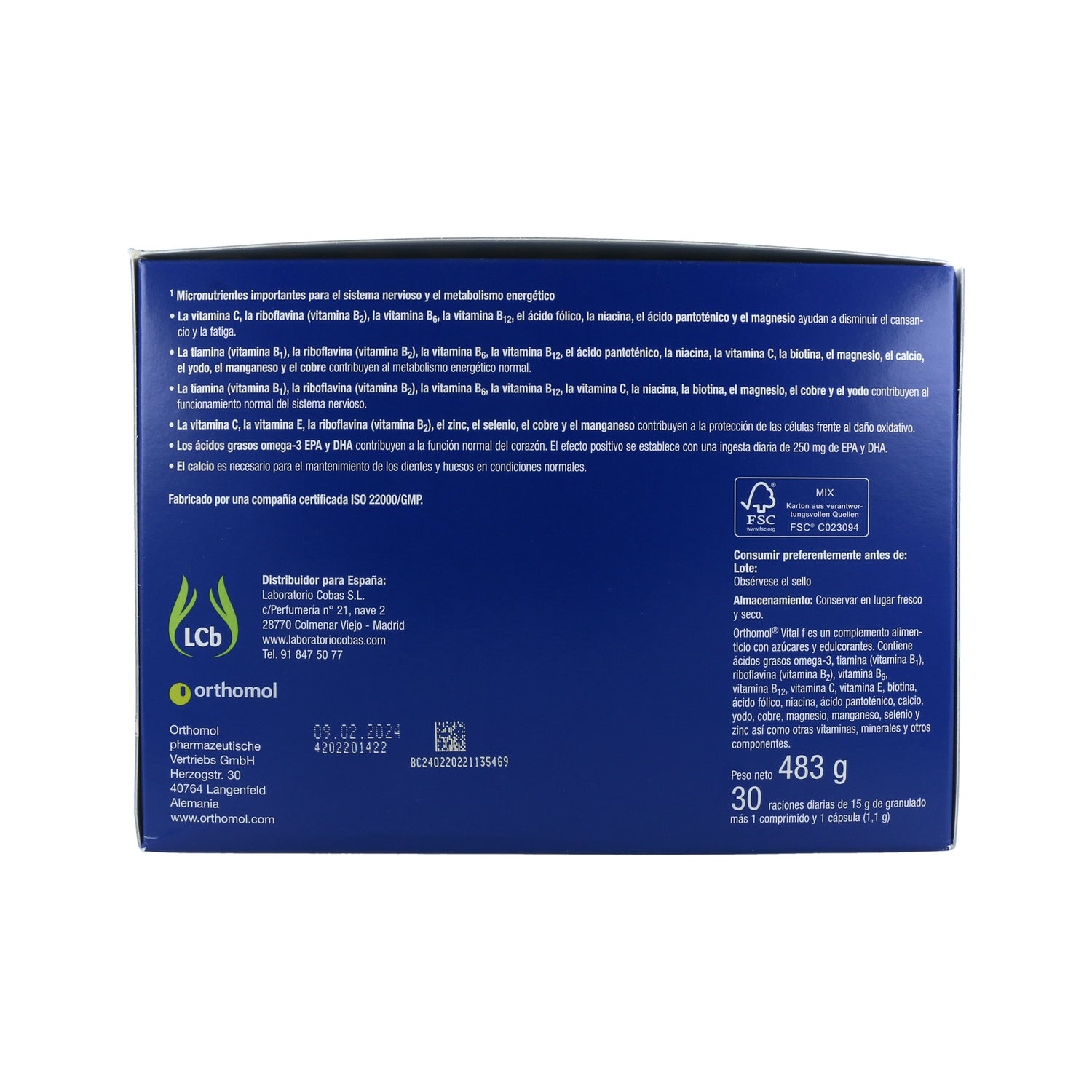 - Vitamine B1 (thiamine), vitamine B2 (riboflavine), vitamine B6, vitamine B12, acide pantothénique, niacine, vitamine C, biotine, magnésium, calcium, iode, manganèse et cuivre : favorise le fonctionnement normal du métabolisme énergétique.