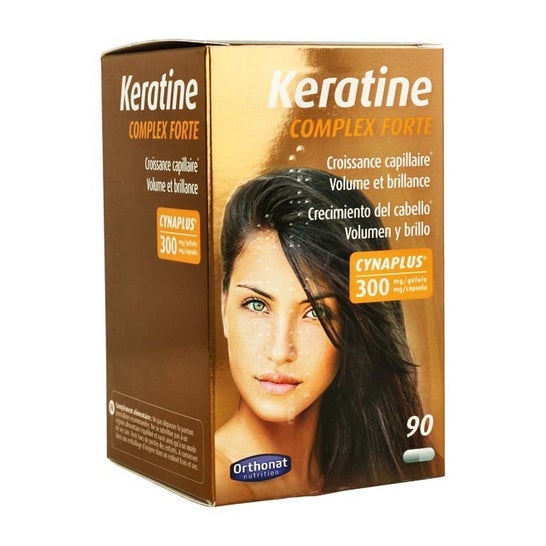 Orthonat Keratine Complex 90caps complément alimentaire formulé à partir du complexe de kératine (cynaplus®), la protéine dont sont composés 95% des cheveux. ce complément alimentaire associe les 18 acides aminés de la protéine de kératine à un complexe de 9 vitamines et de zinc. il aide à réduire la chute des cheveux, améliore leur résistance et leur brillance.