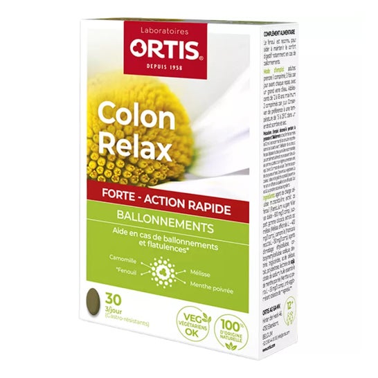 Ortis Colon Relax Forte Ballonnements 30 Comprimés est un complément alimentaire dont la formule 100 % d’origine naturelle aide à soulager rapidement les ballonnements occasionnels.