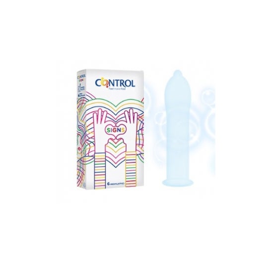 Control Signs 6uds sont des préservatifs lubrifiés et hautement adaptables, de forme appropriée, lisses, anatomiques, transparents et avec réservoir.