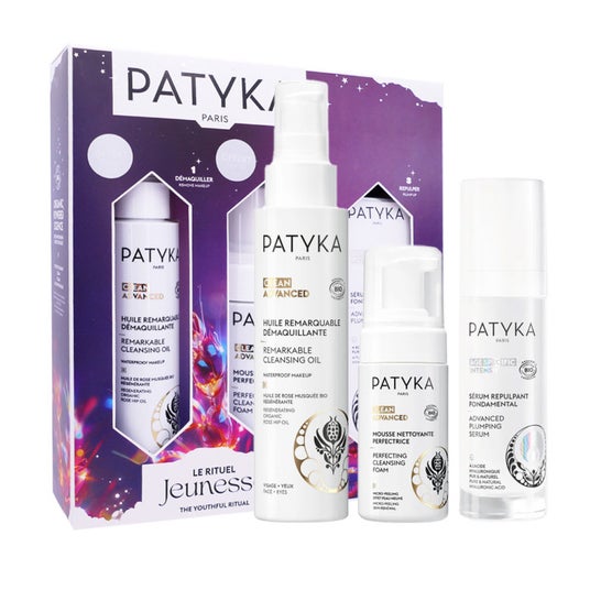 Rituel Jeunesse Patyka est un ensemble qui comprend trois produits essentiels pour le soin de la peau, conçu pour offrir une apparence visiblement plus jeune. Ce coffret contient :