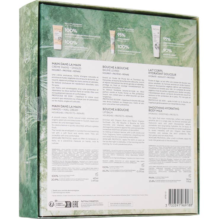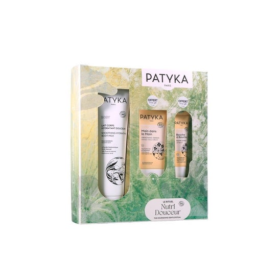 Patyka Pack Cofre Rituel Nutri Douceur réunit les traitements essentiels de la ligne Nutri-Douceur de Patyka pour le soin corporel des peaux sèches, sensibles et très sensibles. Il offre une hydratation profonde visant à nourrir, réparer et apaiser la peau, avec des textures crémeuses et des baumes fondants pour un rituel de confort.