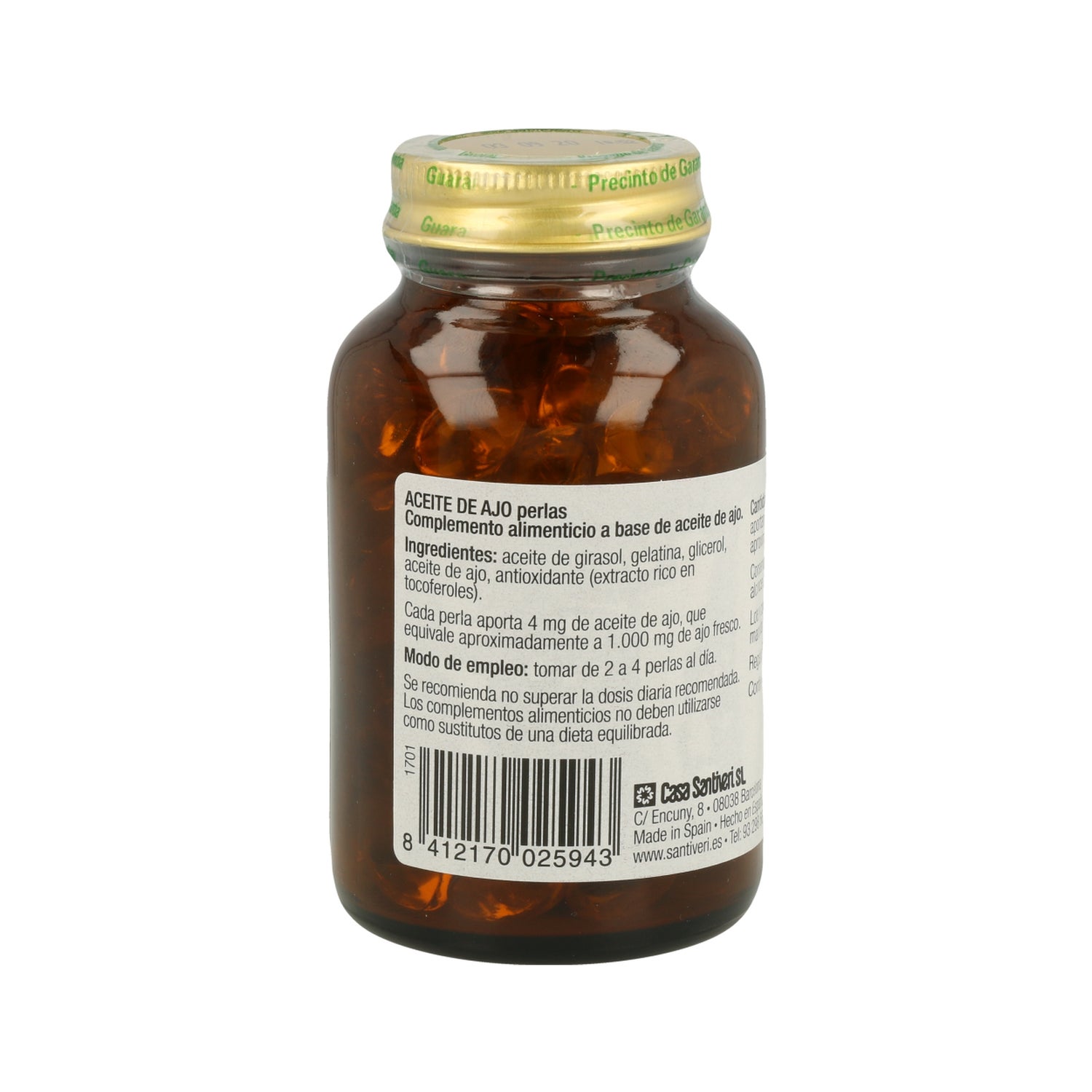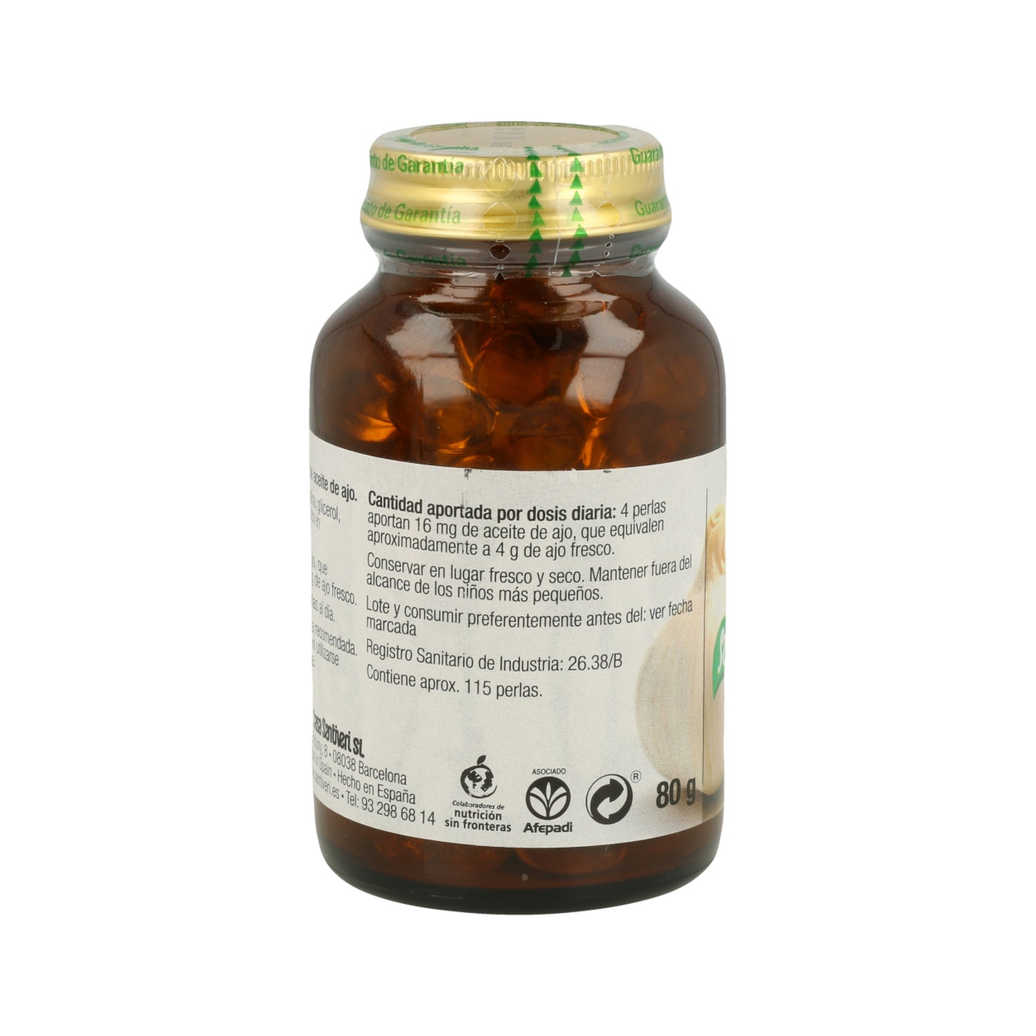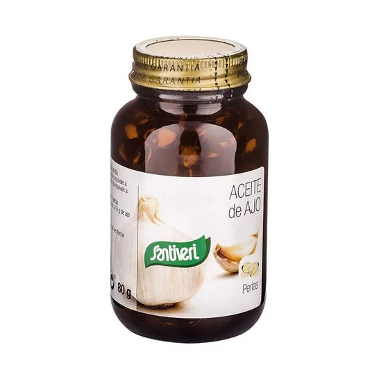 Les Perles d'huile d'ail 115 de Santiveri sont un complément alimentaire à base d'huile d'ail, dont chaque perle contient environ 1 g d'ail frais. L'ail est connu pour ses propriétés favorisant la santé cardiovasculaire.