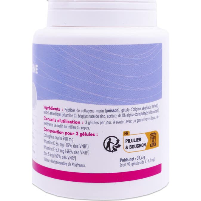 Pharmascience Collagène Marin 90caps est un complément conçu pour favoriser la santé de la peau et des cheveux. Son ingrédient principal, le collagène marin, est associé à des vitamines et des minéraux essentiels qui renforcent ses effets.