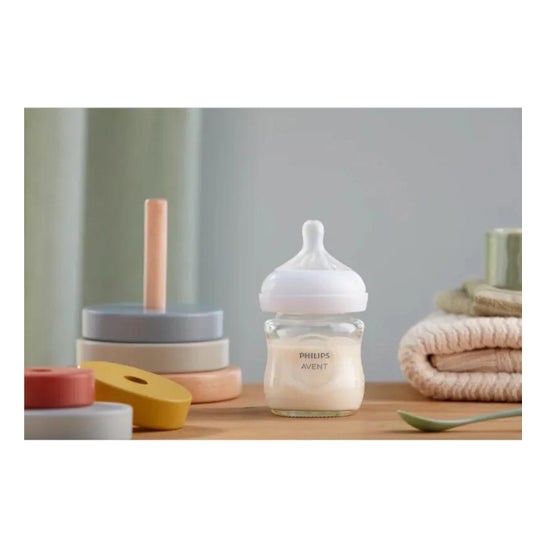 Biberon naturel avec tétine ultrasouple qui ressemble davantage au sein. La large tétine, le design en spirale flexible et les pétales confortables permettent un accrochage naturel similaire à celui du sein maternel.