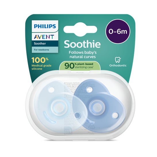 Philips Avent Soothie Sucette Éco Bleu 0-6M Scf099/21 2uds est un produit conçu pour les bébés de 0 à 6 mois. Cette sucette est fabriquée en une seule pièce avec 100% de silicone de qualité médicale, ce qui la rend sûre pour les petites bouches.