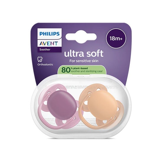 Philips Avent Ultra Soft Sucette 18M+ Lilas Orange 2pcs est un produit spécialement conçu pour les bébés à partir de 18 mois. Cette sucette se caractérise par son bouclier flexible et doux, qui aide à réduire le risque d'irritations et de marques sur la peau du visage du bébé, garantissant un maximum de confort.