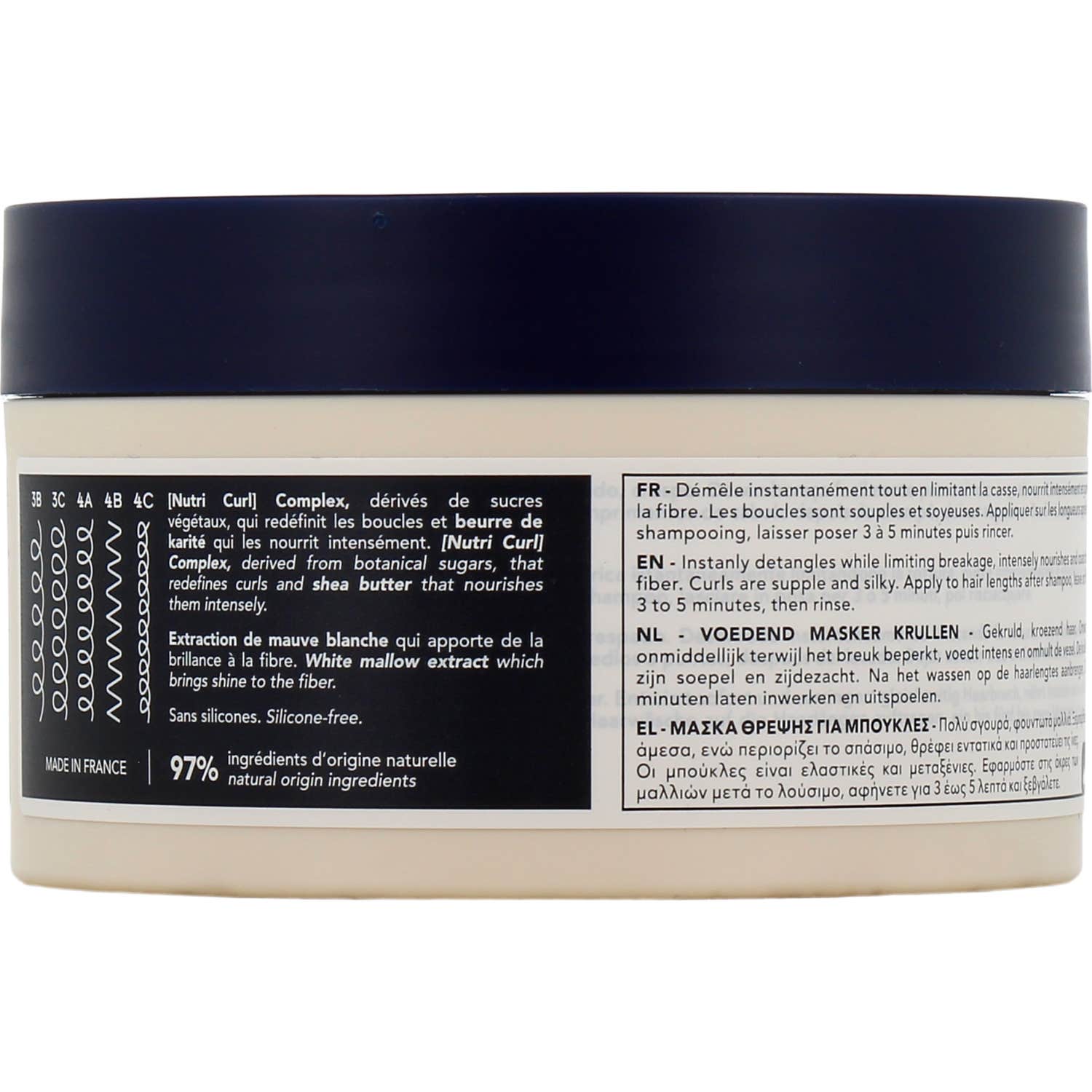 Le cœur de sa formule comprend le complexe Nutri Curl, qui recouvre la fibre capillaire, permettant ainsi d'obtenir des ondulations redéfinies. Il contient également beurre de karité, connu pour ses propriétés nutritives, qui intensifient le soin des cheveux. L'extrait de mauve blanche présent dans la composition renforce la brillance des cheveux, résultant en une chevelure visiblement plus lumineuse.