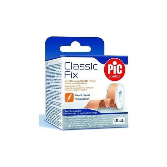 Pic Solution Classic Fix Sparadrap 1,25cmx5m est idéal pour la fixation sécurisée de bandages et de pansements sur une peau normale, offrant un maintien efficace et confortable pendant le traitement des blessures. Son format en rouleau facilite sa manipulation et son application, s'adaptant aux besoins quotidiens tant à la maison que dans des environnements professionnels.