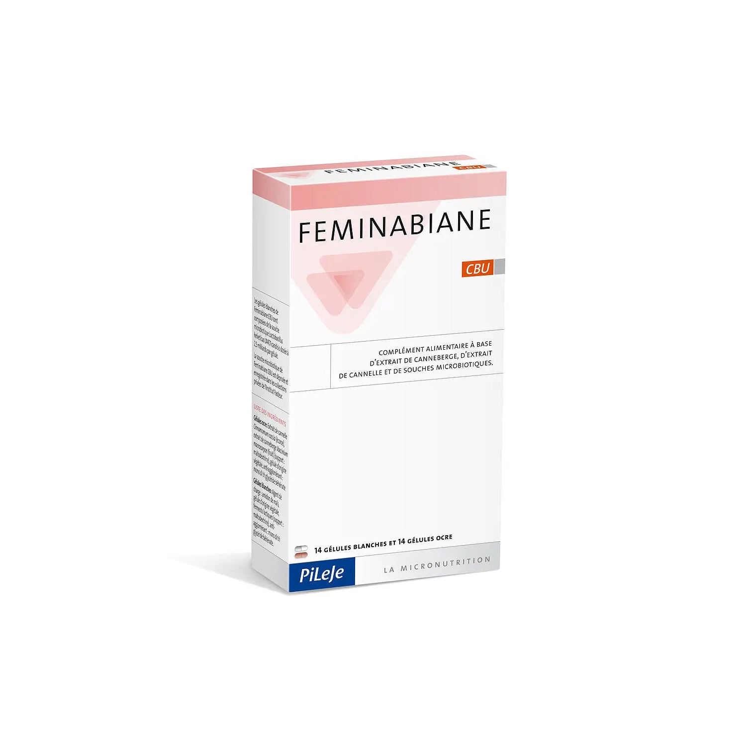 Feminabiane CBU des laboratoires PiLeJe est recommandé pour réduire les risques de récidives des infections urinaires et permet de préserver l'équilibre de la flore vaginale. Il contient des souches microbiotiques qui contribuent à diminuer la fixation de certaines bactéries sur les parois des voies urinaires, principales responsables des gênes urinaires.