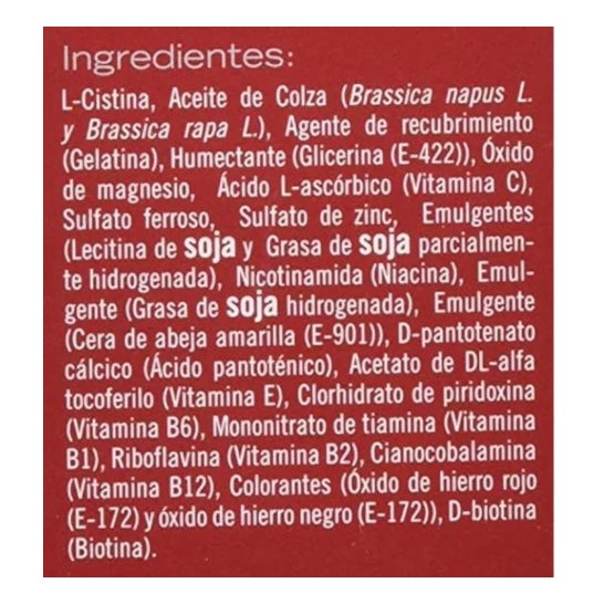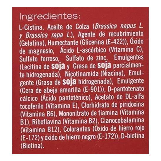 L-Cystine, Fer, Biotine, Zinc et 8 autres vitamines.