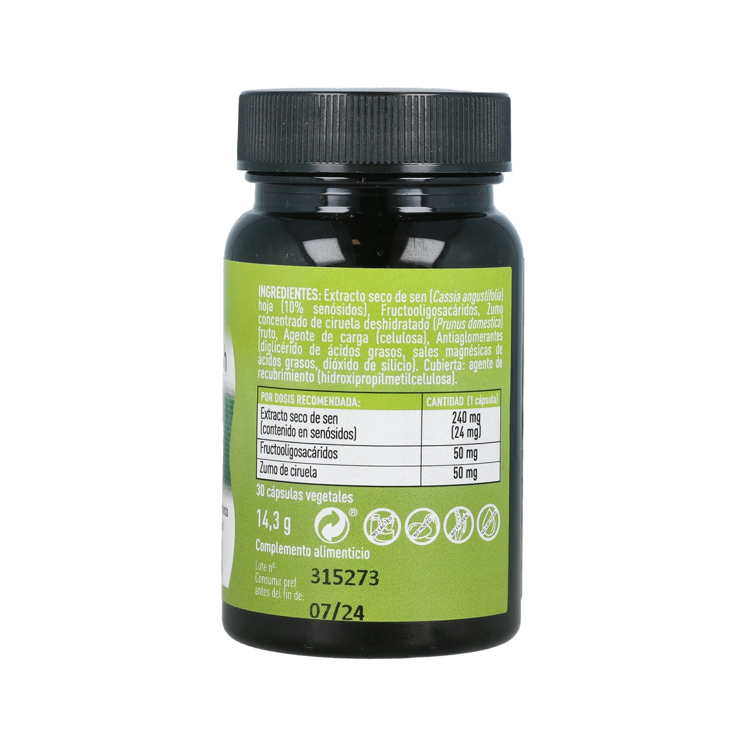 Capsules composées d'ingrédients sains pour l'organisme qui favorisent le transit intestinal en cas de constipation, grâce à sa formule à l'extrait de séné, aux fructooligosaccharides (FOS) et au jus de prune. Son action est de 83% pendant le premier et le deuxième jour de traitement.