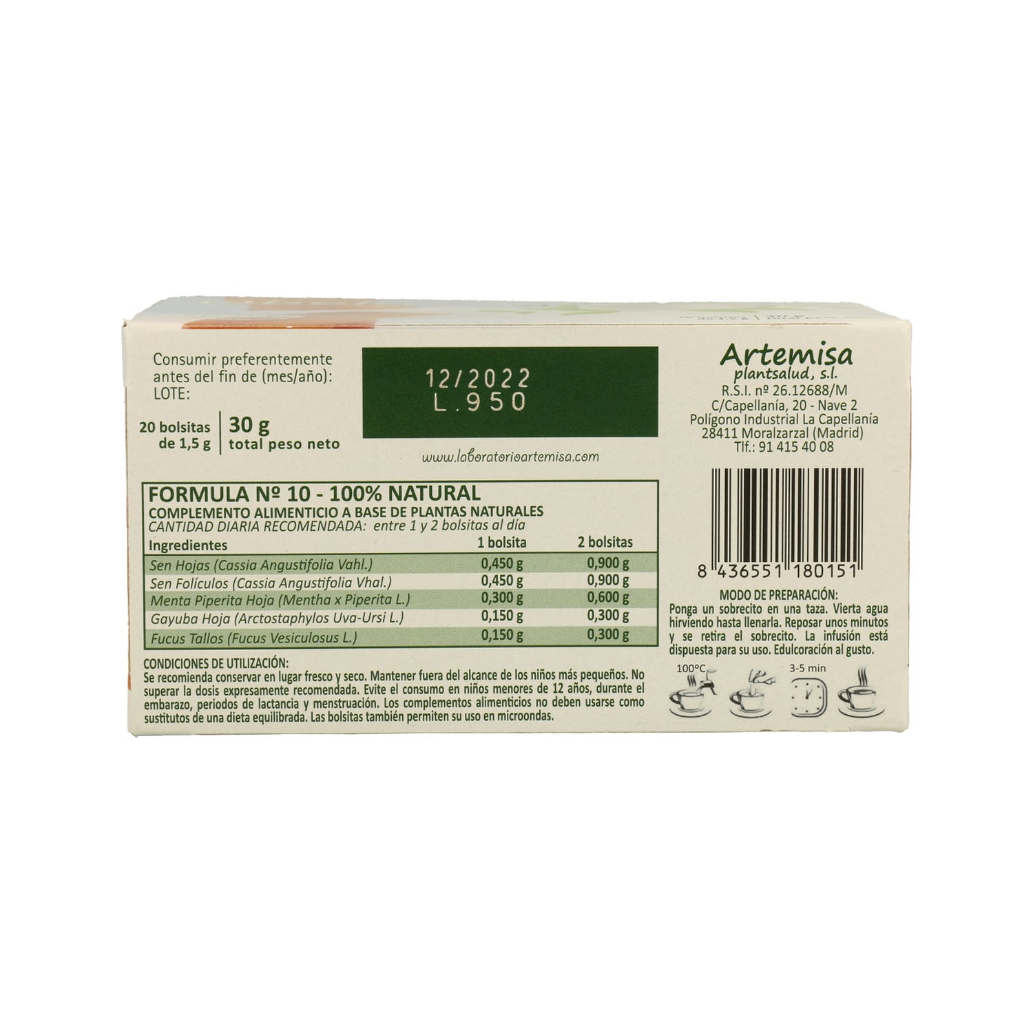 Infusion à base de plantes naturelles qui aident à améliorer les digestions difficiles et lourdes, en contribuant à l'extraction naturelle des toxines. Sa teneur en séné, menthe, fucus et busserole contribue à purifier l'organisme, en aidant à éliminer la sensation d'inflammation de l'estomac et du ventre, ainsi qu'à bien digérer les aliments et à favoriser la combustion des graisses et des liquides, contribuant ainsi au maintien et/ou à la perte de poids.
