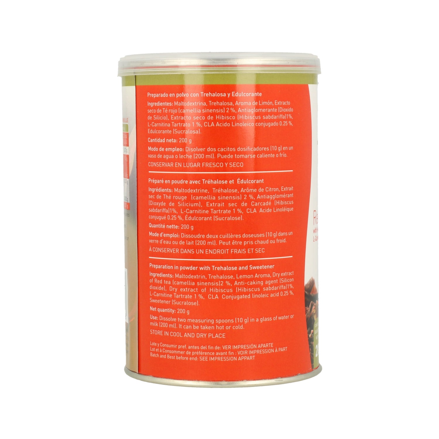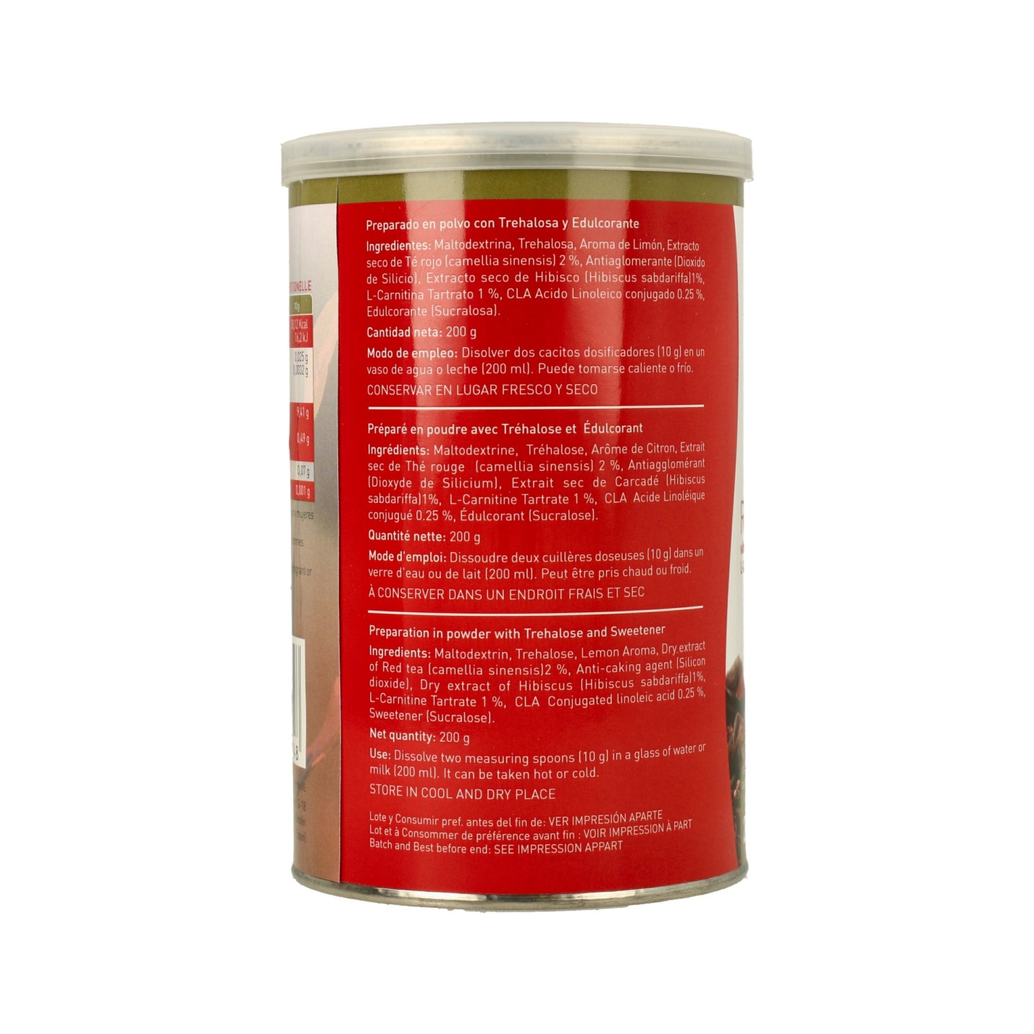 Pu-Erh (extrait de thé rouge), hibiscus, L-carnitine, CLA (acide linoléique conjugué), maltodextrine, tréhalose, agent anti-agglomérant (dioxyde de silicium), arôme de citron, édulcorant (sucralose).