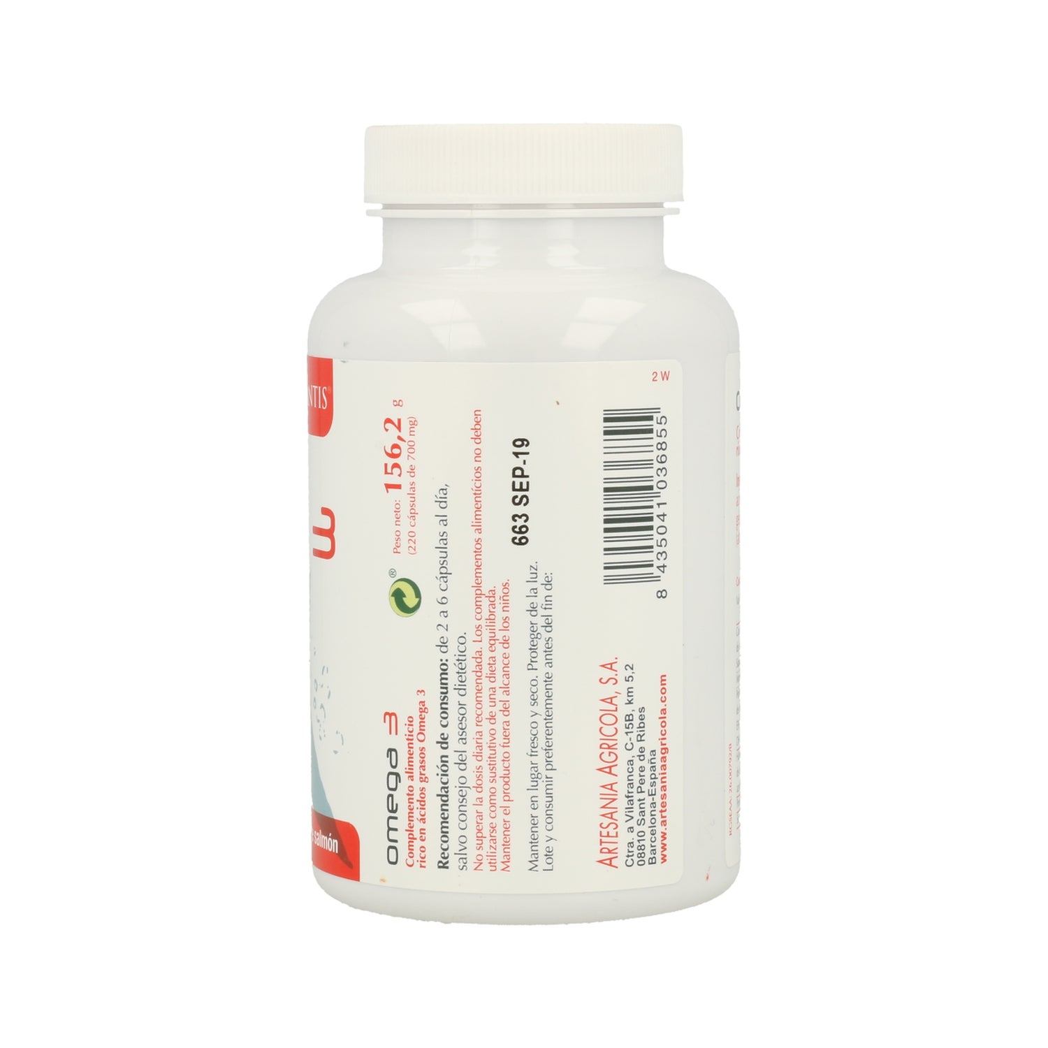 Complément alimentaire qui aide à réduire les taux de cholestérol et de triglycérides dans le sang et à prévenir la formation de caillots ou de thrombus. Elle est également bénéfique pour la santé des articulations et du cœur, pour le développement du cerveau et pour le maintien d'une peau en bon état. Les acides gras oméga 3 sont essentiels, car le corps ne peut pas les synthétiser, et sont d'une grande importance pour de nombreux processus dans l'organisme. Format de 220 perles.