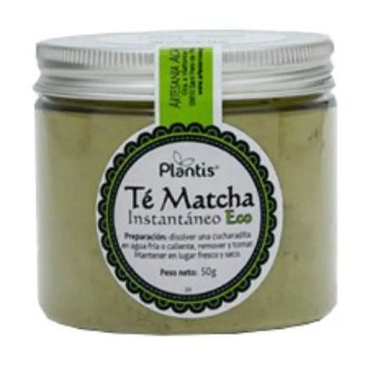Plantis Matcha Eco Tea 50g de thé vert matcha instantané, provenant de feuilles cultivées biologiquement dans le sud du Japon, et traité selon leurs normes biologiques, qui est idéal pour préparer des boissons chaudes ou des pâtisseries.