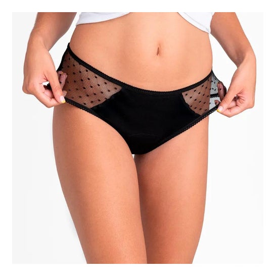 Les culottes menstruelles Platanomelon Kiwitas Plumeti S Black offrent confort et style. Disponible en tailles S, M et L, il absorbe le flux de manière optimale. Ce sous-vêtement possède une zone absorbante même à l'arrière. Pour savoir quelle partie est tachée, il y a des points dans la zone qui l'indiquent. Fabriqués en coton, ils sont doux pour la peau et agréables à porter. Cette culotte a une capacité d'absorption de : 6 tampons/3 serviettes/2 coupes menstruelles.