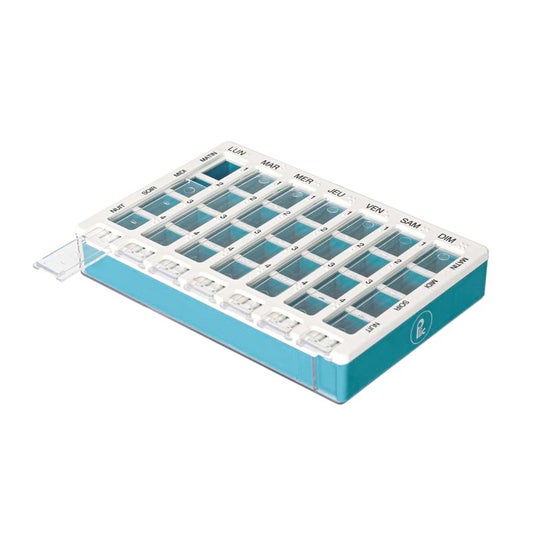 Ce produit dispose de 28 compartiments, répartis de manière à correspondre aux sept jours de la semaine et permettant quatre moments de prise quotidienne :