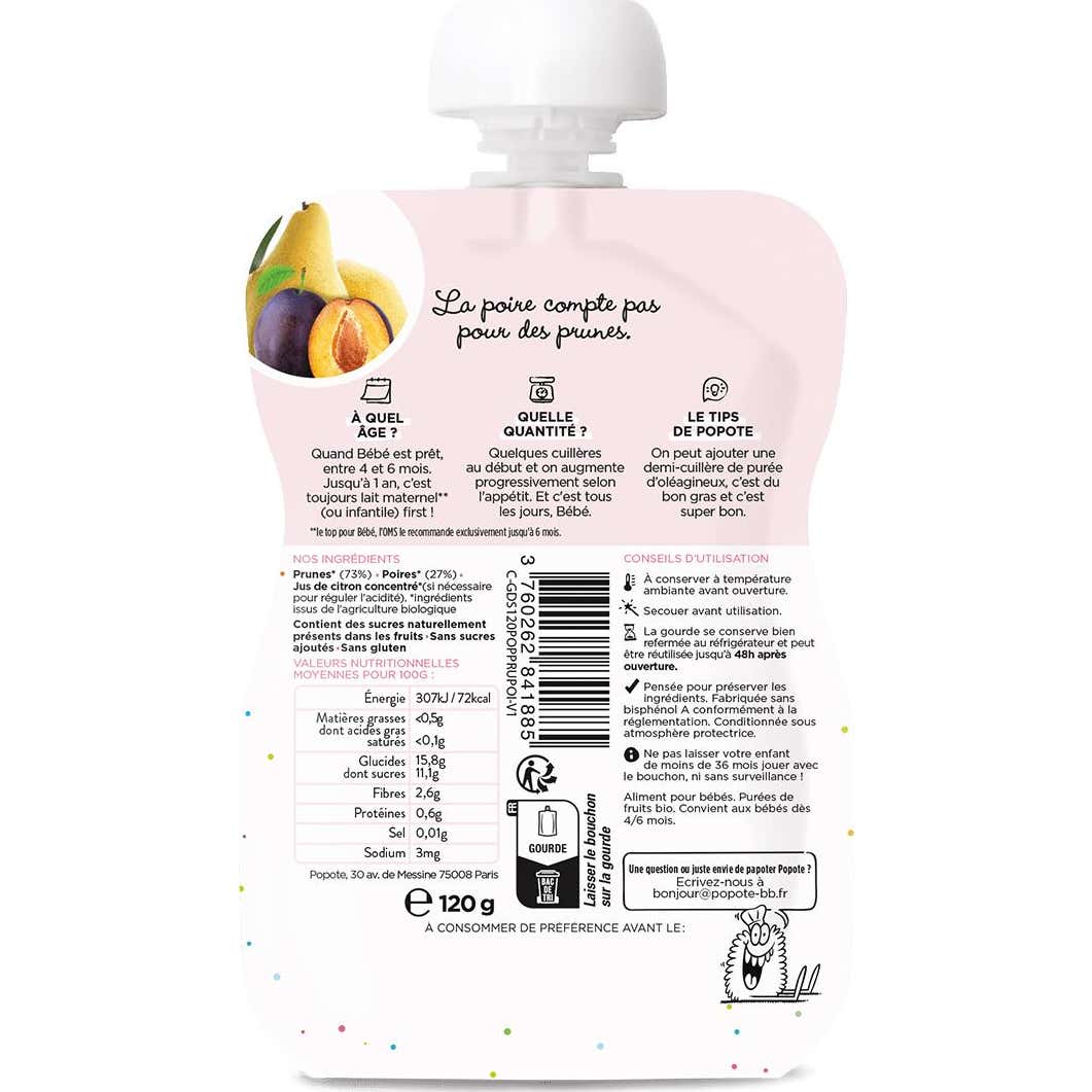 La Popote Compote Prunes & Poire est 100% biologique et fabriquée en France, ce qui garantit sa qualité et sa fraîcheur. C'est un excellent choix pour t'accompagner durant tes premières étapes d'alimentation.