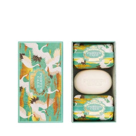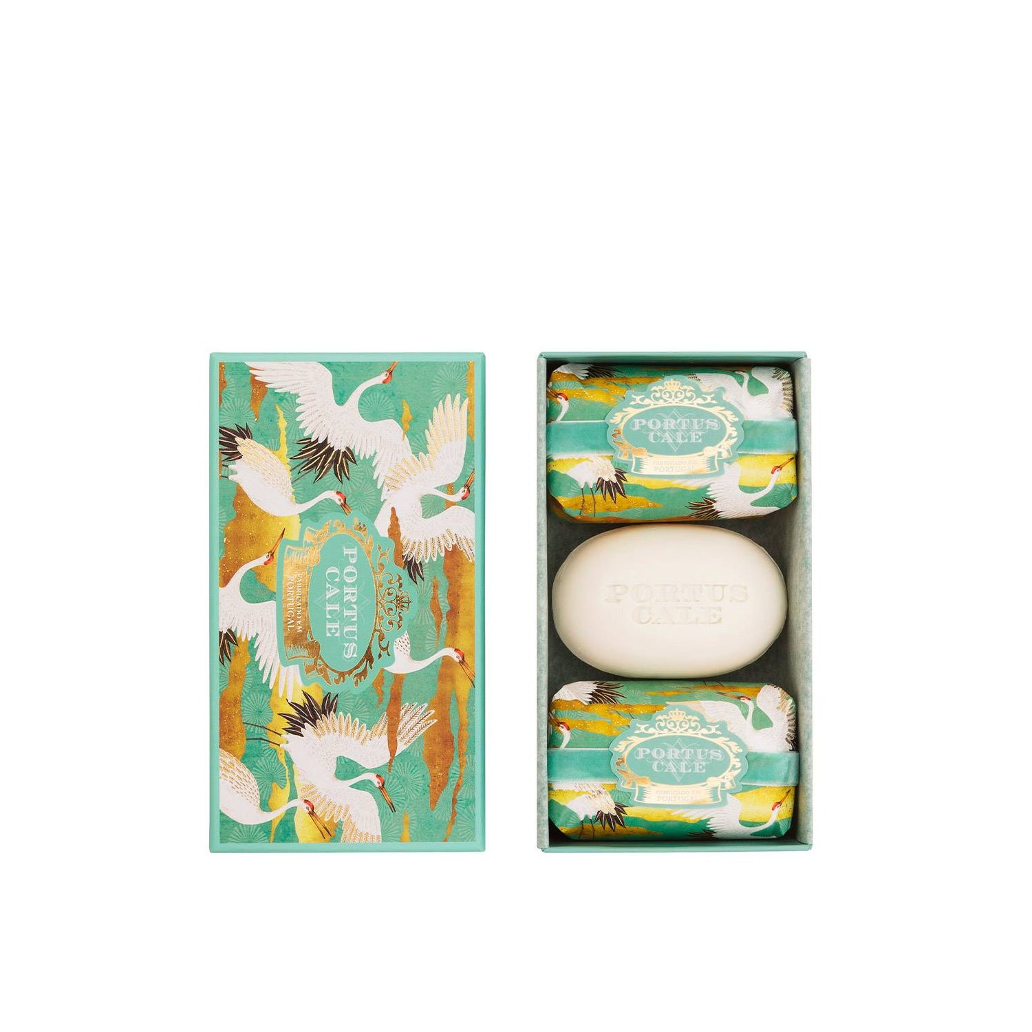 Portus Cale White Crane Set de Savons 3x150g est un ensemble élégant qui comprend trois savons, chacun méticuleusement emballé à la main et attaché avec un délicat ribbon en velours.