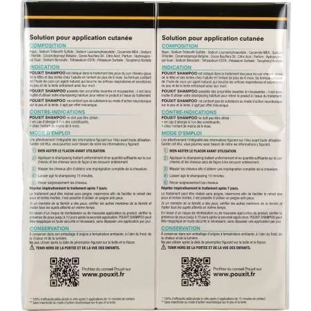 Le shampooing a un agréable parfum de pêche, ce qui facilite son utilisation tant pour les enfants que pour les adultes. La présentation de deux flacons de 200 ml chacun permet de traiter jusqu'à quatre personnes, offrant une protection optimale pour toute la famille.