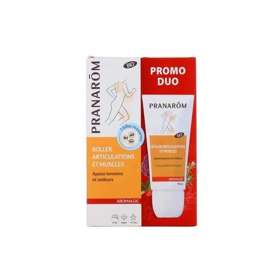 Pranarôm Aromalgic Roller Joints Muscle Roller 2x75ml est un roll-on qui aide à soulager les douleurs musculaires et articulaires. Il est composé d'huiles essentielles pures telles que la gaulthérie, la menthe poivrée, l'eucalyptus citronné et le romarin à camphre à l'action anti-inflammatoire et analgésique. Contient 2 flacons de 75 ml chacun.