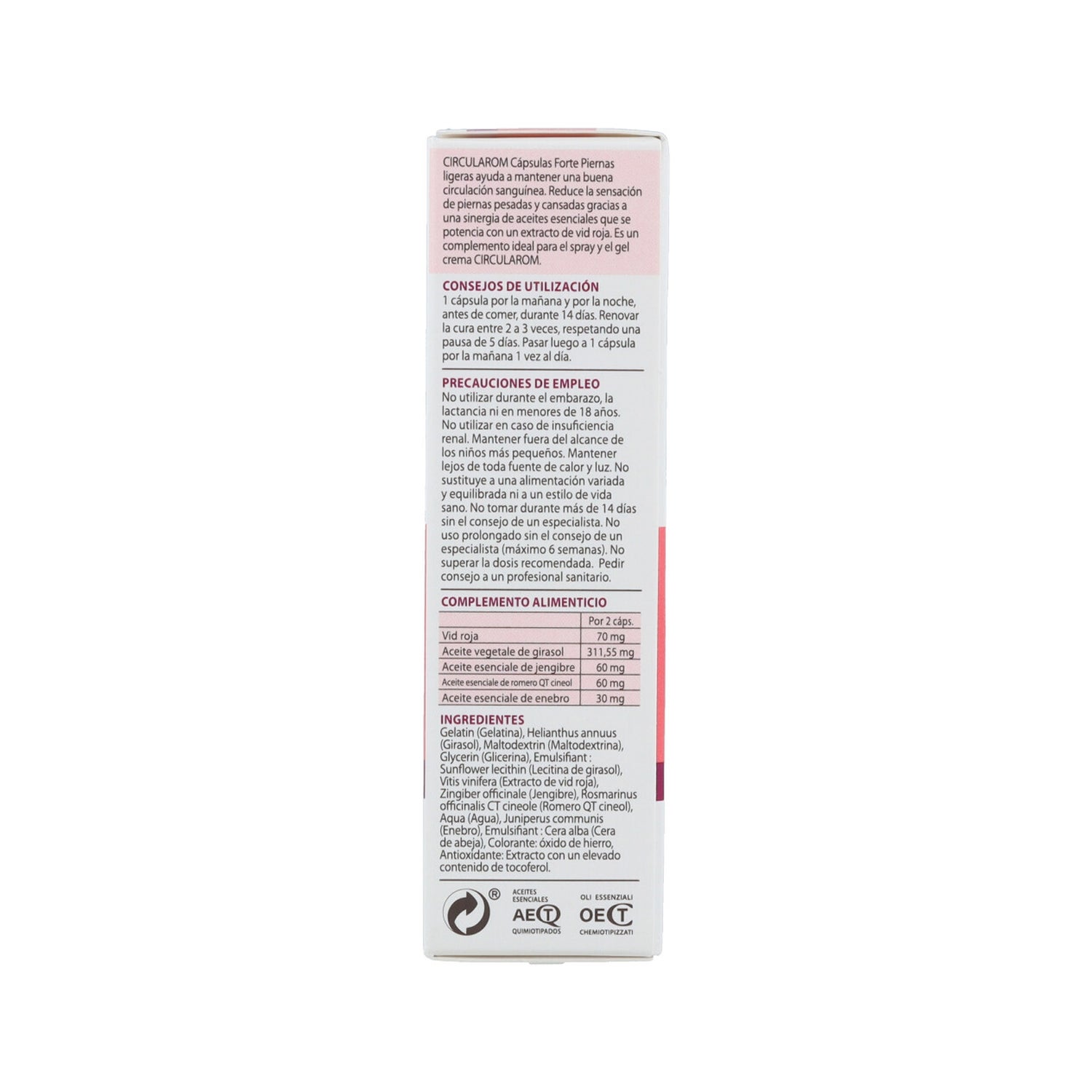Pranarôm Circularom Light Legs Forte Capsules 30caps est un complément alimentaire qui favorise la circulation sanguine dans les jambes. Grâce à une combinaison d'huiles essentielles pures (gingembre, romarin et genévrier) et enrichie d'extrait de vigne rouge, il aide à éliminer la rétention d'eau et à maintenir une bonne circulation sanguine dans les jambes.