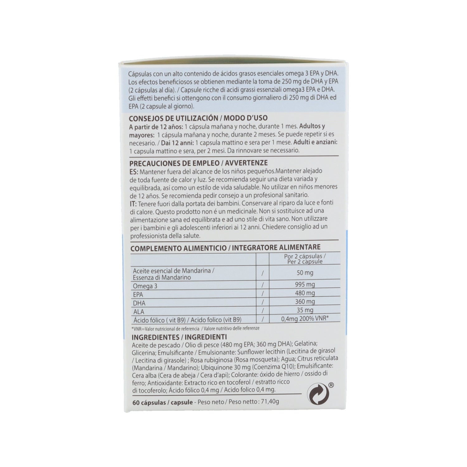 Complément alimentaire à base d'acides gras oméga 3 qui ont un effet bénéfique sur la pression artérielle, contribuant à contrôler le taux de cholestérol et à maintenir une bonne circulation et donc un cœur sain. Aide à la transmission des impulsions nerveuses, renforçant ainsi la fonction cérébrale.