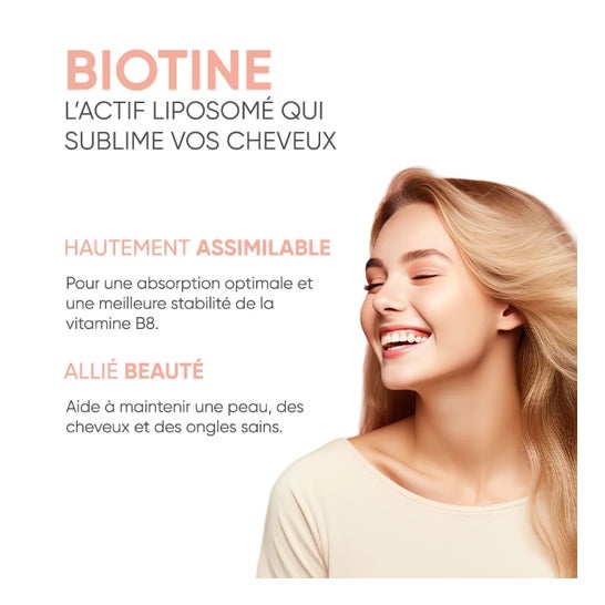 Prescription Nature Liposomia Biotine 30 Gélules est un complément alimentaire formulé à partir de biotine encapsulée dans des liposomes, une technologie exclusive qui améliore la stabilité et l’absorption des actifs.