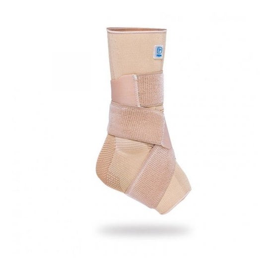 Prim Aqtivo Skin Pé Élastique avec Bande 8 P706BG S 1 Unité est une chevillère élastique avec des coussinets malléolaires en silicone et un bandage en 8.