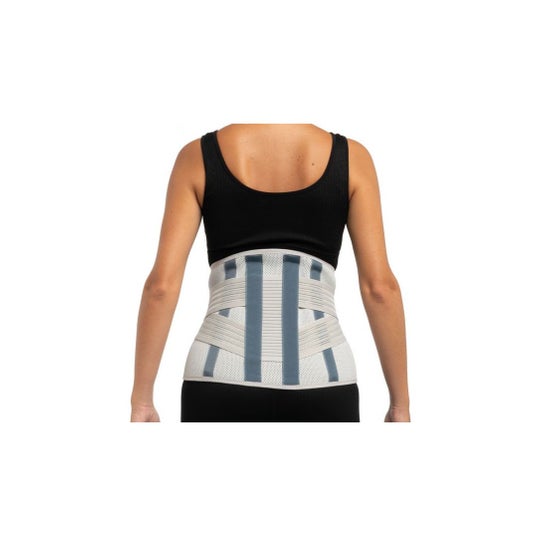 Prim Gold Ceinture Lombaire Semirigide Double Tenseur Gris XXXL 1 ud offre une stabilisation lombaire de niveau IV et un soutien quotidien pour douleur intense dans la région inférieure du dos. Elle est indiquée pour les personnes ayant des limitations fonctionnelles, comme la lombosciatique ou une faiblesse musculaire avec excès de poids. Taille XXXL pour un tour de pelvis de 135-145 cm.