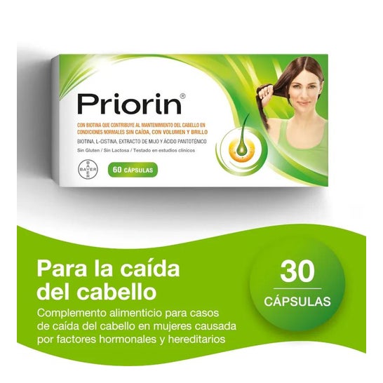 Bayer Priorin Anti-Chute 60 Capsules est un complément alimentaire à base de vitamines, acides aminés et extrait de plante, conçu pour lutter contre la chute de cheveux.
