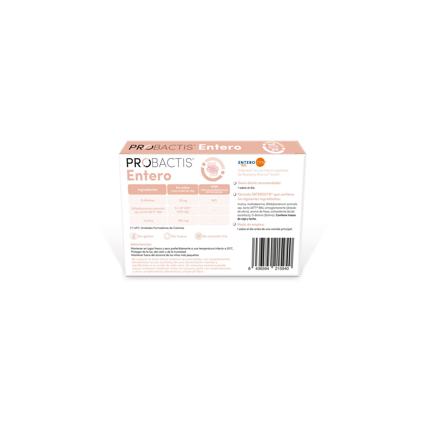Complément alimentaire symbiotique composé de la souche probiotique Bifidobacterium animalis ssp. lactis (souche intestinale protectrice), D-Biotine et Inuline, indiqué dans les processus diarrhéiques infectieux.