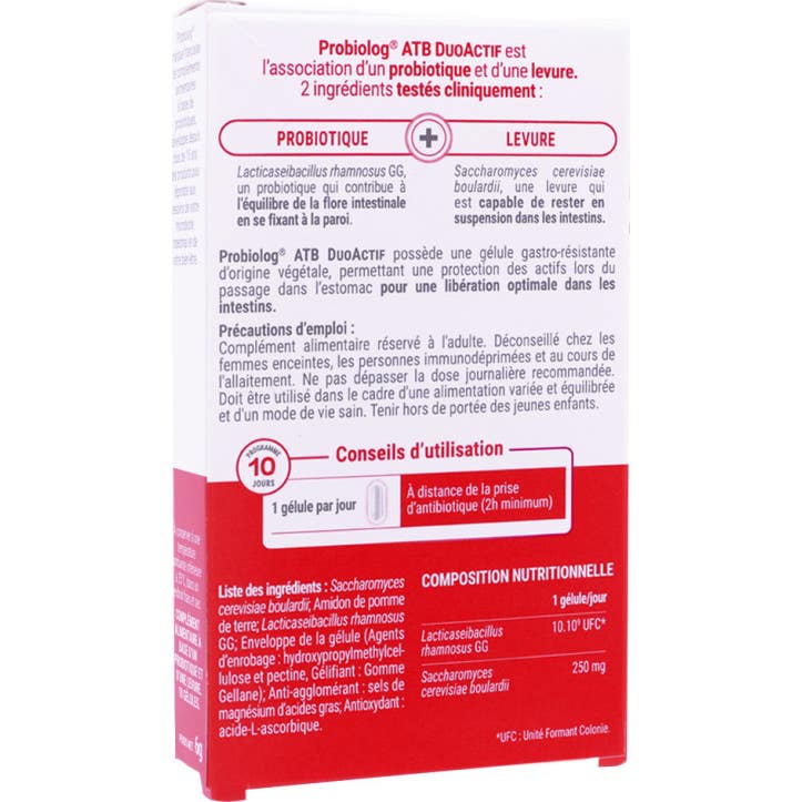 Les ingrédients de Probiolog Atb Duoactif incluent :