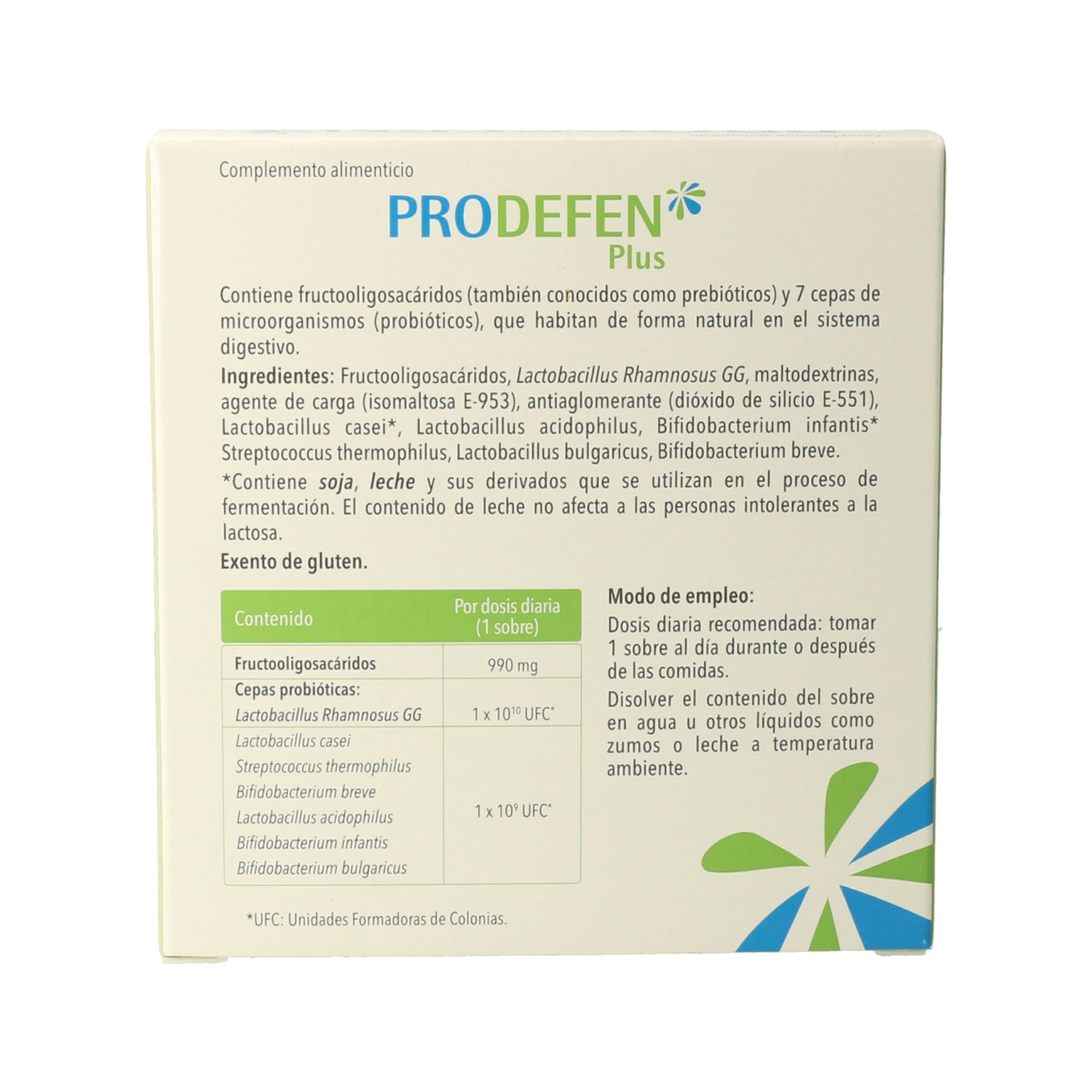 Prodefen Plus 10 Sachets est un complément alimentaire à base de fructooligosaccharides (également appelés prébiotiques) et de 7 souches de micro-organismes (probiotiques), qui peuplent naturellement le système digestif.