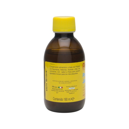 MIEL, PROPOLIS, ACÉROLA, ECHINACEA ANGUSTIFOLIA, HÉLYCRISE, ÉDULCORANT (SIROP DE MALTE), ARÔME DE FRAISE.