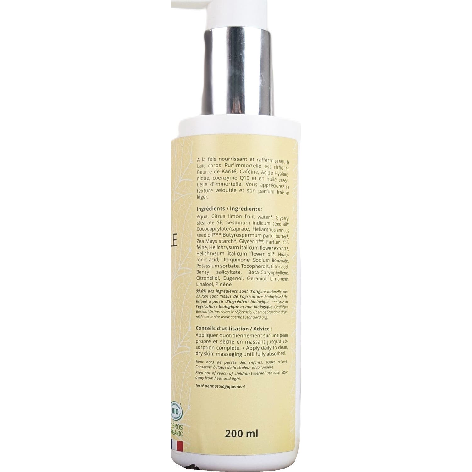 Propos' Nature Pur'immortelle Lait Corporel Bio 200ml est un traitement exceptionnel pour la peau. Ce produit se distingue par sa concentration en huile essentielle et macérat d'Immortelle, ce qui en fait un allié idéal pour le soin corporel. Sa formule, enrichie en beurre de karité, procure une profonde hydratation, laissant la peau avec une sensations de confort inégalée.