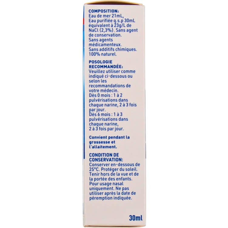 Prorhinel Natural Spray Nasal 30 ml est un dispositif médical conçu pour fournir un relief rapide de la congestion nasale tant chez les adultes que chez les enfants dès la naissance. Ce spray utilise de l'eau de mer hypertonique de la baie de Cancale en Bretagne, connue pour sa haute concentration en sels minéraux et oligo-éléments.