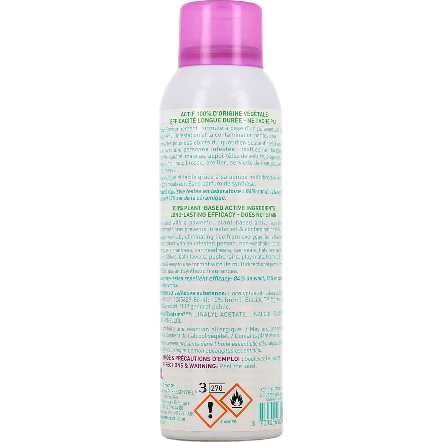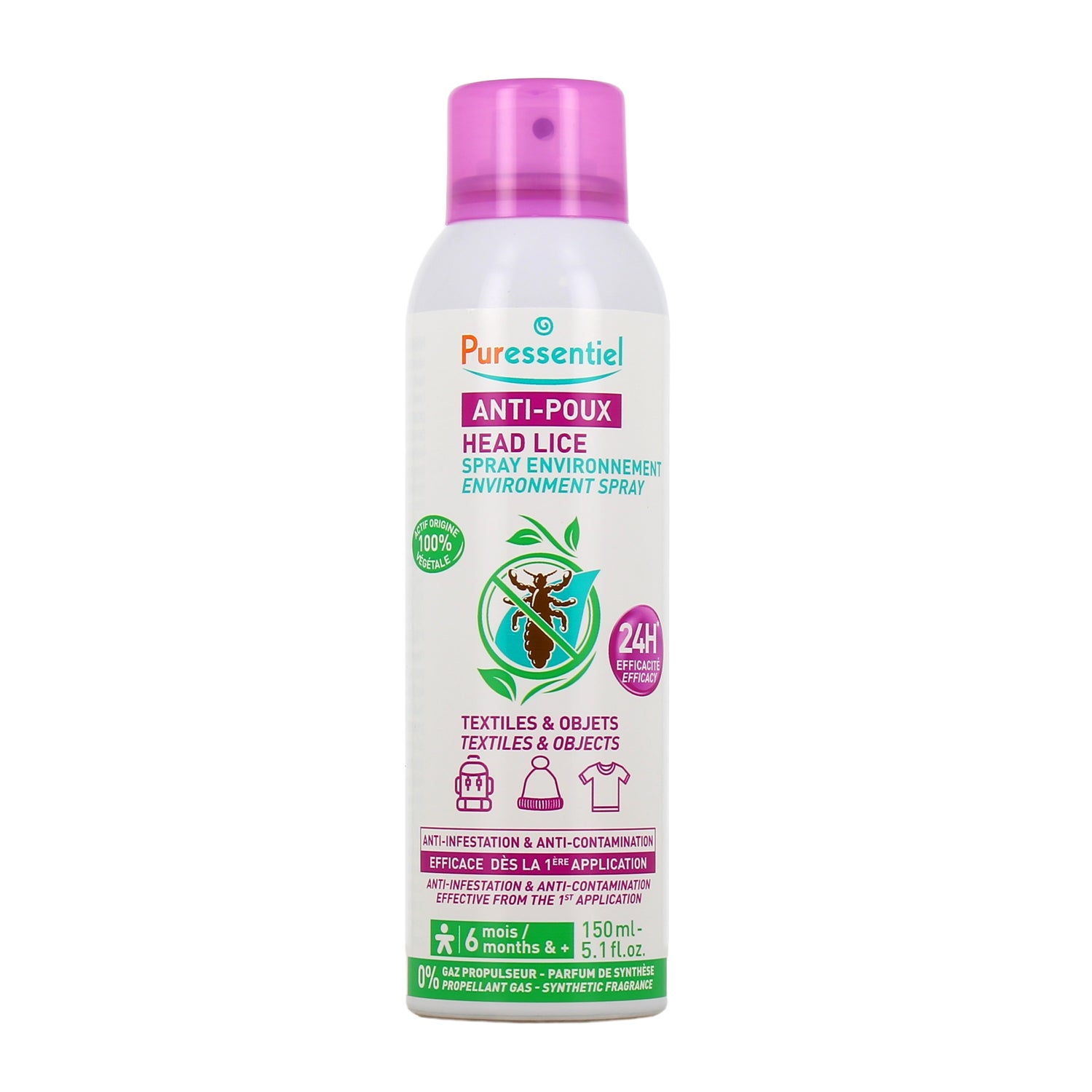 Cela lui permet d'agir dès la première application. Son efficacité a été prouvée scientifiquement, réussissant à repousser les poux et à prévenir les infestations sur les textiles et objets du quotidien pendant une période de 24 heures.