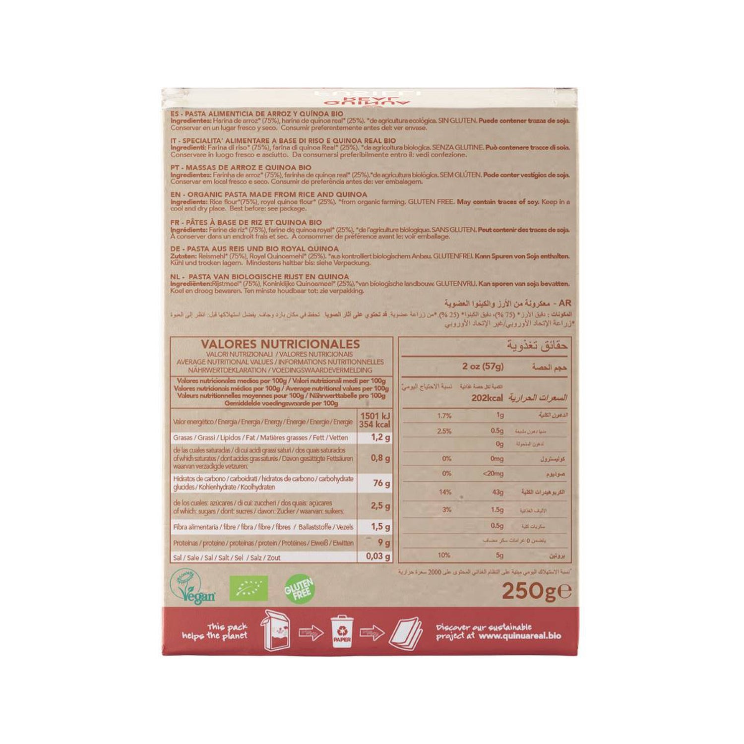 Quinoa Real Fusilli Riz Et Quinoa 250g fusili Riz Royal Biologique et Quinoa qui sont sans gluten et peuvent être combinés avec tout type de sauce ou de préparation. C'est un aliment idéal pour les sportifs ou les personnes actives.