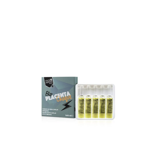Real Natura Ampoules Bio Placenta Choc 5x10 ml pour cheveux est un traitement intensif en ampoules monodoses de 10 ml, présenté dans un pack de 5 unités. Il est indiqué pour :