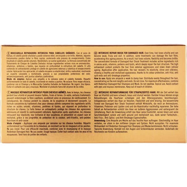 Son objectif est de réparer et conditionner les cheveux en profondeur, récupérant leur élasticité, brillance et douceur. Les ampoules font partie de la ligne Redenhair pour cheveux secs et abîmés, fournissant des actifs réparateurs qui renforcent la structure capillaire et rétablissent l'hydratation, obtenant des résultats visibles dès les premières applications.