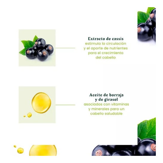 Sa formule, enrichie en extrait de cassis, contribue à augmenter l'apport d'énergie et de nutriments du cuir chevelu pour une chevelure revitalisée.