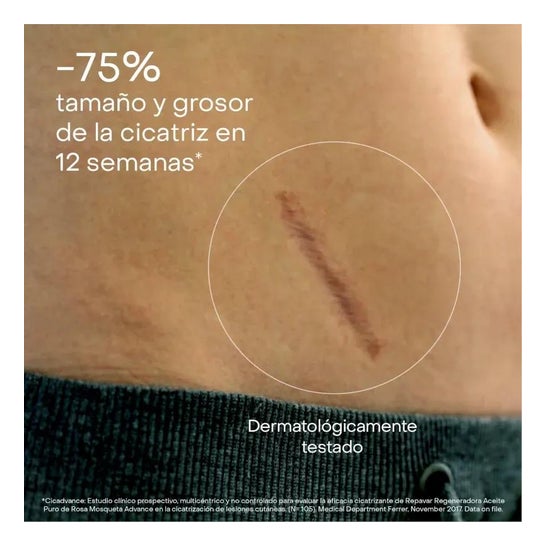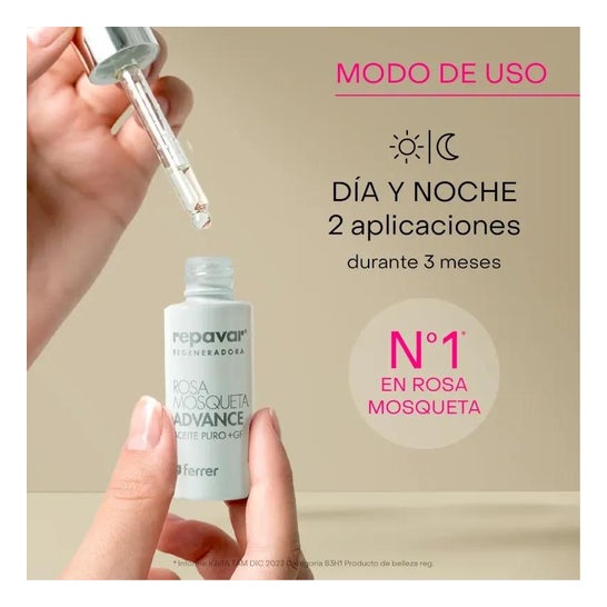 L'huile d'églantier Repavar Advance est une huile aux propriétés cicatrisantes et anti-inflammatoires qui lutte contre les imperfections de la peau (rides, taches, vergetures, cellulite, ulcères, brûlures...) Avec Repavar, vous pouvez réduire toutes ces imperfections, tout en hydratant et en restaurant l'élasticité de la peau. Elle a un pouvoir régénérateur élevé grâce à ses principes actifs qui améliorent la cicatrisation et restaurent la peau de l'intérieur. Il est également efficace pour soulager la peau soumise à des traitements cosmétiques tels que peeling, laser ou injections.