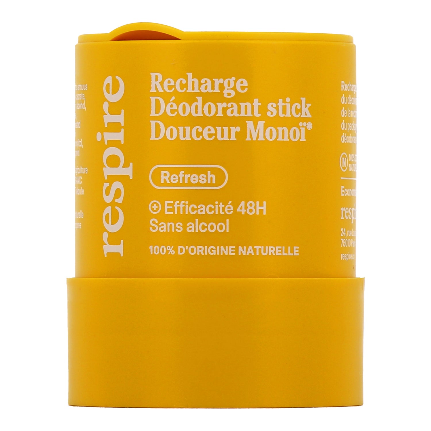 Respire Recharge Déodorant Stick Doux Monoï Bio 50 g est un produit conçu pour offrir une protection efficace contre les odeurs et l'humidité pendant une période allant jusqu'à 48 heures. Sa formule est entièrement naturelle et est rehaussée par l'arôme ensoleillé du monoï, en faisant un allié fiable pour affronter de longues journées.