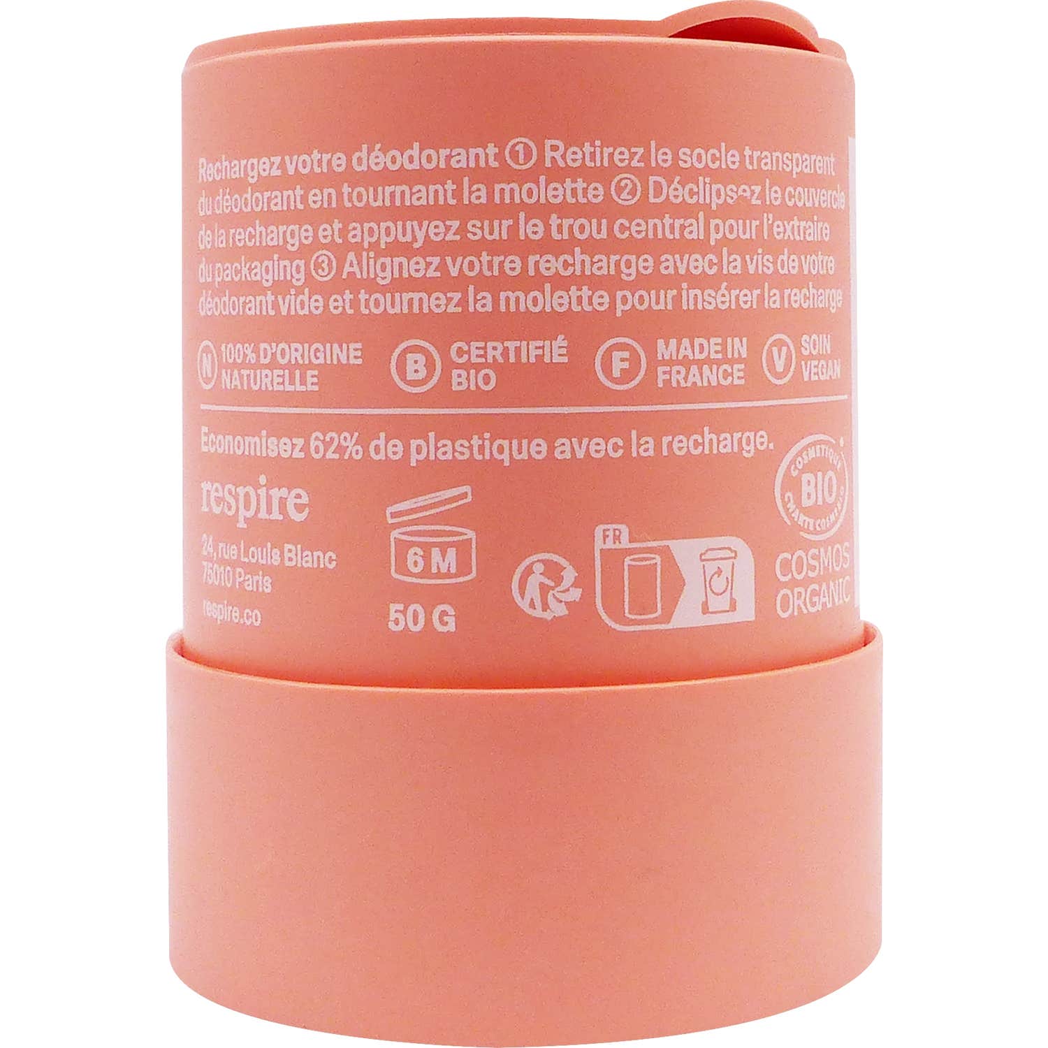 La recharge s'installe facilement dans le stick déodorant, garantissant une utilisation durable. Il est important de garder à l'esprit que, lors du passage d'un déodorant conventionnel à un déodorant naturel, un période d'adaptation peut être nécessaire pour ton corps. Il est suggéré de consulter un professionnel en cas de doutes sur son utilisation.