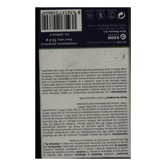 Complément alimentaire qui aide à réduire la sensation de fatigue et/ou d'épuisement. Formulé à base d'extrait de racine de rhodiola, de basilic pourpre, d'huile essentielle de fleur de lavande, de stigmates de safran, de vitamines B5, B1, B12 et B6. Il contribue également au maintien du bien-être physique et mental.